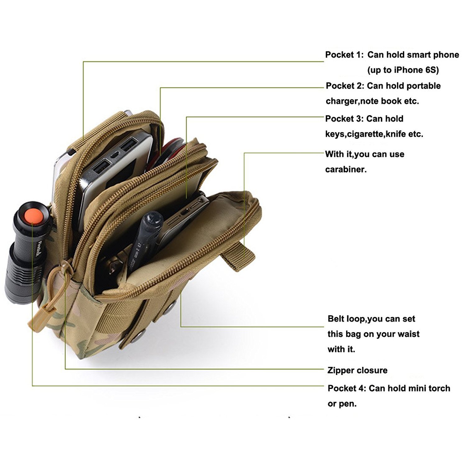 Has multiple storage with multiple layers, large capacity! Molle system & belt loop mounted, easy to carry!