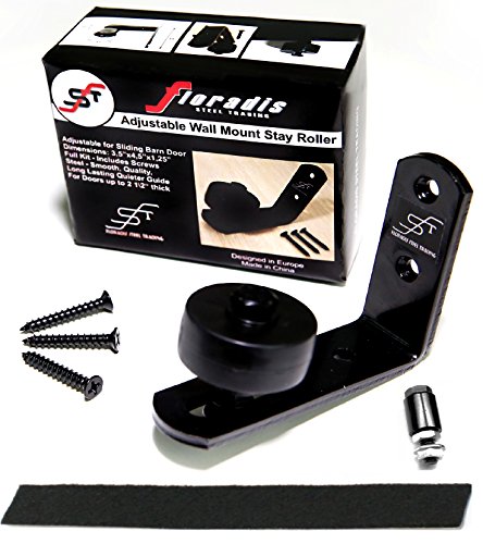 Stay Roller Floor Guide for Sliding Barn Doors Hardware by Floradis / Black Coated Steel Bottom Door Guide Kit with 2 Rollers/ Ultra Smooth Adjustable Wall Mount Guides for Sliding Barn Door