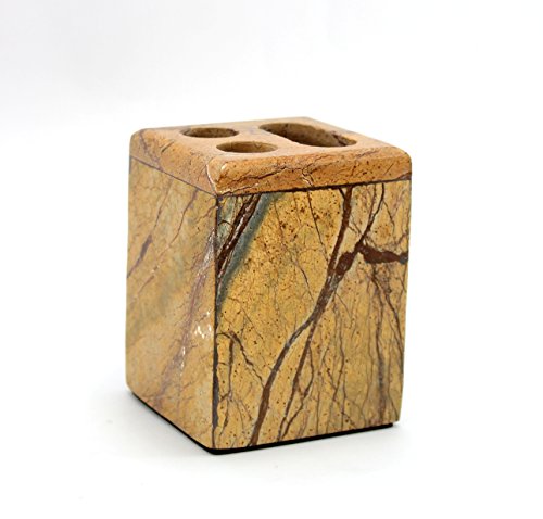 -. Title : KLEO - Bathroom Accessory Set made from Natural Green Stone - Bath Accessories set of 4 includes Soap Dispenser, Toothbrush Holder, Tumbler and Soap Dish (Brown)
