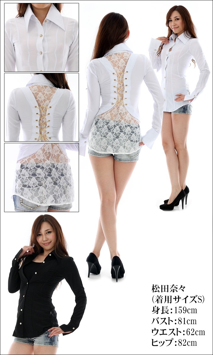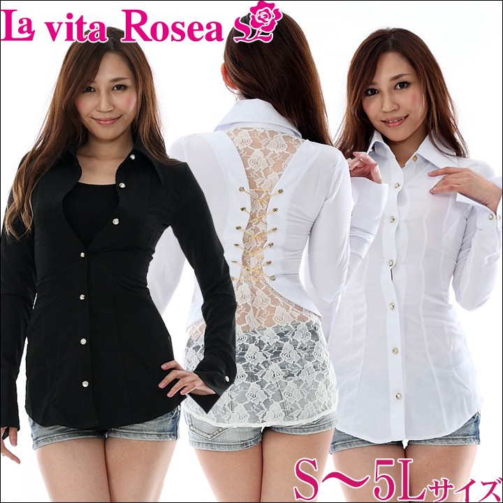 バックレースワイシャツ(QC) 大きいサイズ 春 セクシー レディース ギャル服 ギャル 大人 13号 15号 17号 19号 LL 2L 3L 4L 5L 6L 6L