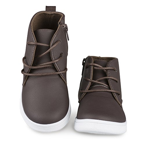 -. Binding : Apparel -. Brand : Chillipop -. Department : baby-boys -. Feature : CLASSIC + CASUAL STYLE: These high-top shoes are so versatile and can be worn with anything. They offer a classic style combined with the comfort your boy enjoys. / DESIGN DETAILS: Solid faux leather upper with contrasting white rubber sole and lace up style, make these shoes the perfect addition to any casual outfit your boy is wearing. / COMFORT FIRST: Soft uppers and flexible soles provide comfort for kids' little feet while they run around and play. / CHOOSE YOUR COLOR: These high-tops are available in Brown and Black. / HOW TO CLEAN: Spot clean easily with a damp cloth to keep these shoes looking like brand new. -. Model : SCC910-BRN-T10 -. ProductGroup : Shoes -. ProductTypeName : BOOT -. Title : Chillipop Boys & Toddlers High-Top Loafer/Sneaker Shoe – Faux Leather, Lace Up