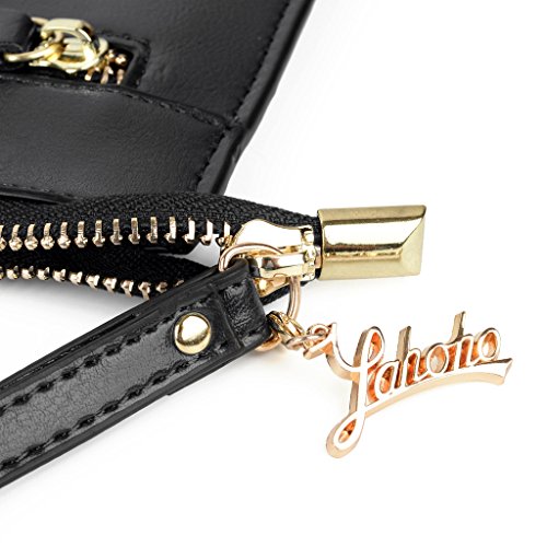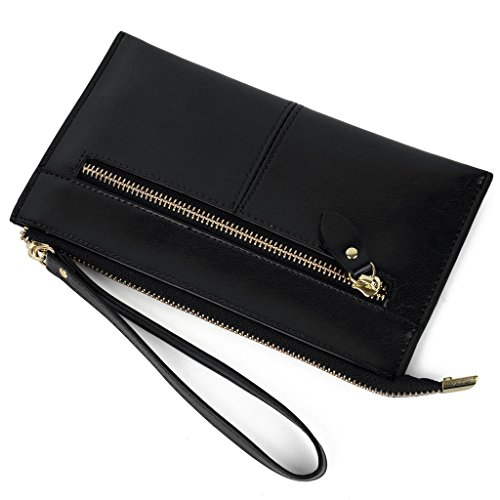 - Title : Yahoho Women's Large Genuine Leather Zipper Pocket Purse Clutch Wallet with Wrist Strap Fit Iphone6s Plus Black