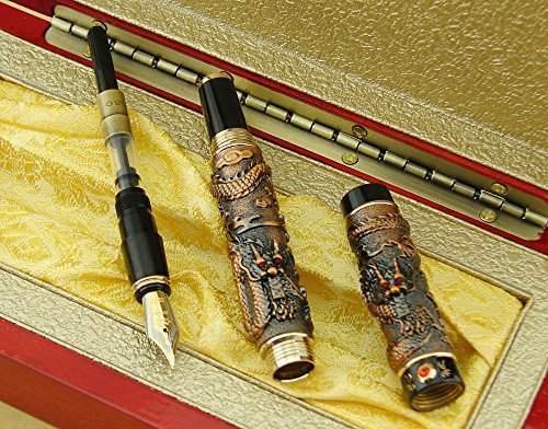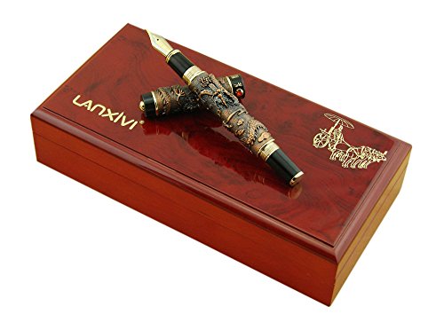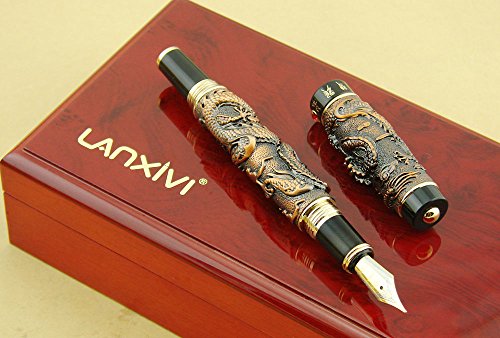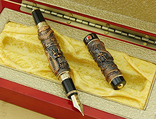 -. Title : Lanxivi® Jinhao Twins Dragon Playing Pearl Gray Red Fountain Pen Red Jewerly Wooden Gift Box