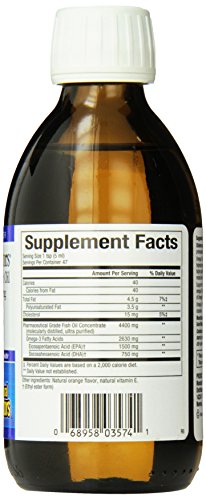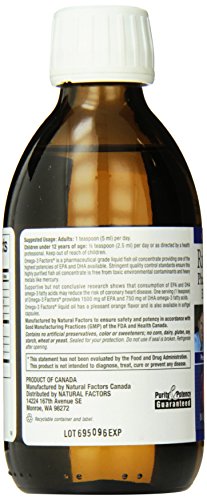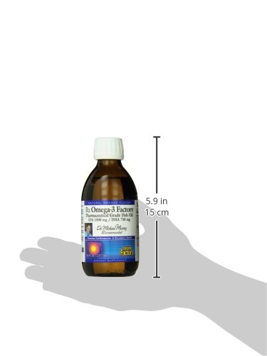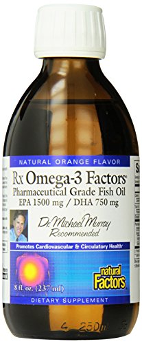 Studio : Natural Factors Publisher : Natural Factors Binding : Health and Beauty Product Description RxOmega-3 Factors is a pharmaceutical grade liquid fish oil concentrate providing one of the highest potencies of EPA and DHA available. Stringent quality control standards ensure this highly purified fish oil concentrate is free from toxic environmental contaminants and heavy metals like mercury.;Supportive but not conclusive research shows that consumption of EPA and DHA Omega-3 fatty acids may reduce the risk of coronary heart disease. One serving (1 tsp) of RxOmega-3 Factors provides 1500 mg of EPA and 750 mg of DHA Omega-3 fatty acids. RxOmega-3 Factorsliquid oil has a pleasant orange flavor and is also available in softgel capsules. 0
