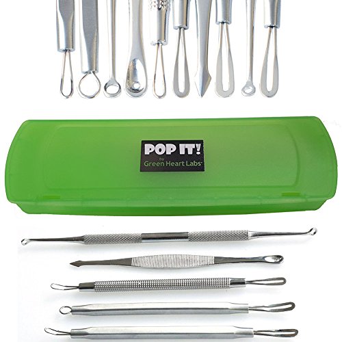 -. Feature : Professional kit made from German Stainless Steel that allows safe sanitization. / Recommended by Medical Aestheticians for safe at home removal of pimples. / Comes with a handy case for easy and sanitary storage. / 5 tools and 10 different heads ensure the propper tool for the job. / Easily remove pimples, acne, blackheads, and white heads for clear radiant skin.