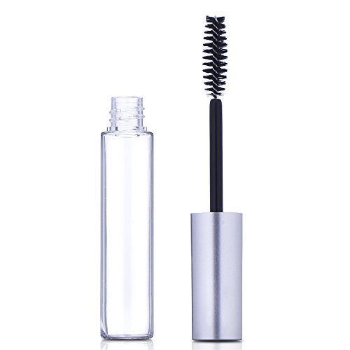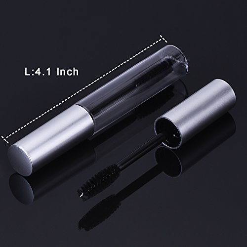 eBoot 10 ml Empty Mascara Tube with Eyelash Wand, Rubber Inserts, Funnels and Transfer Pipettes Set for Castor Oil, DIY Mascara Container with Cap (Silver)