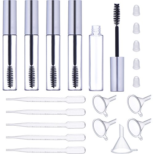 - Eyelash brush bottle set: package includes 5 pack empty mascara tube with brush, 5 pack rubber inserts, 5 pack funnels and 5 pack transfer pipettes, enough for spare or replacement
