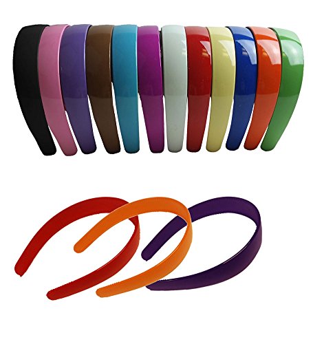 A Dozen 1 Inch Plastic Hard Headbands In Gorgeous Dark Colors. This set includes the following colors:Light Pink, Purple, Light Brown, Light Blue, Fuchsia, White, Red, Royal Blue, Orange, Yellow, Light Green.