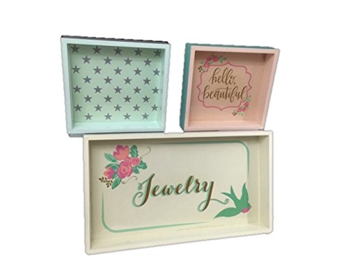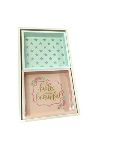 Sheffield Home Laquer Paint Jewelry Decorative Pastel Hello Beautiful Set of 3 Nesting Trays