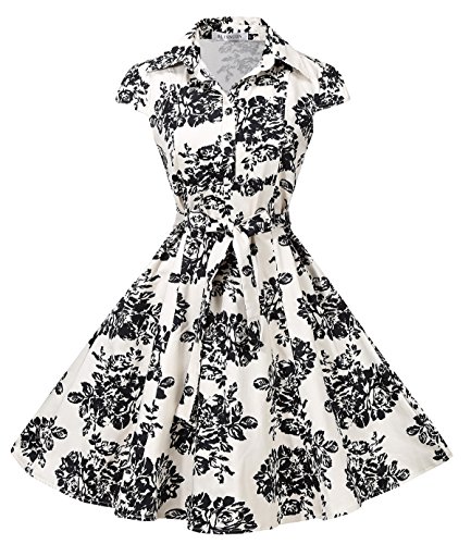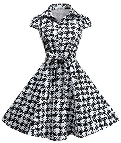 BI.TENCON Women's Retro Vintage 1950s Style Cap Sleeve Swing Party Dress swing into a look of pure, polished sophistication with this vintage-inspired, A-line frock. Cute cap sleeves, covered buttons, a notched collar, and a discreet side zip provide a flawless fit, cotton-blend fabric, ensuring an ensemble that's always in step with style.