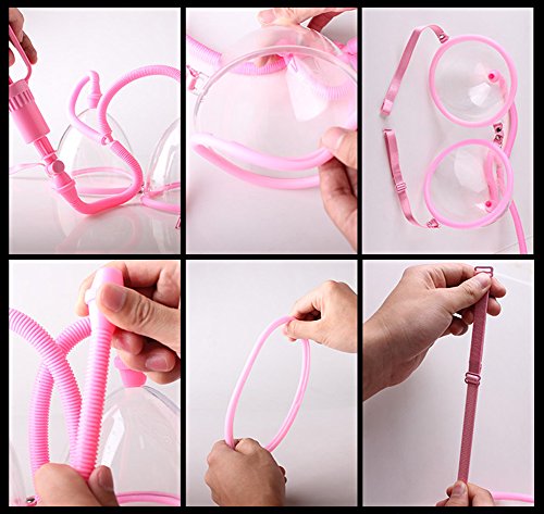 HenMerry Dual Vacuum Suction Cup Breast Enlargement Pump Set (Pink- Electric pump)