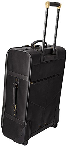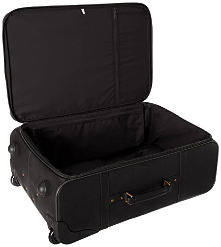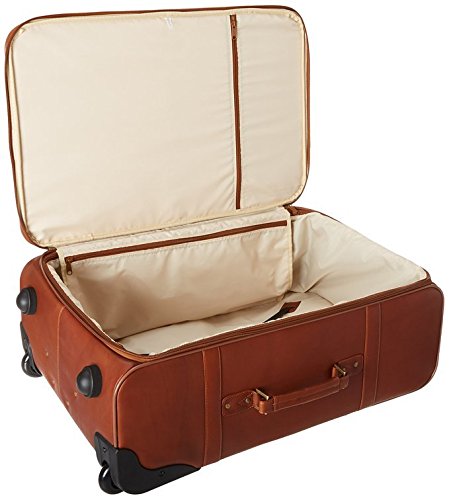 -. Feature : Plush padded inner lining, antique brass hardware with leather pulls / Recessed roller bearing in-line skate wheels for smooth pulling or pushing on any surface, extra long locking handle / Three outer zipper pockets, two inside zipper pockets and elastic cross straps / Locking zipper / Leather ID tag and piggyback strap to carry valise or case