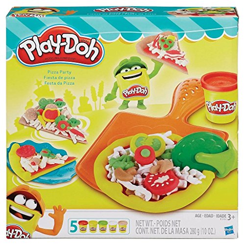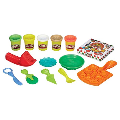 It's Pizza Party madness at your very own Play-Doh pizzeria! Make and deliver the silliest pizza pies you can imagine with all kinds of fun tools and squishy Play-Doh compound. Roll some imaginary pizza dough in the pan with the roller, grate a pile of make-believe mozzarella, and then add your favorite pretend toppings with the half-mold paddle. You can also use the grater to squeeze your own silly spaghetti dish. When you're ready, slice your Play-Doh pizza masterpiece, toss it in the box, and deliver to your friends!Feature
