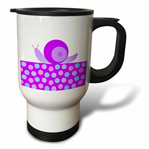 3dRose Cute Purple Snail on Polka Dot Trail Stainless Steel Travel Mug, 14-Ounce
