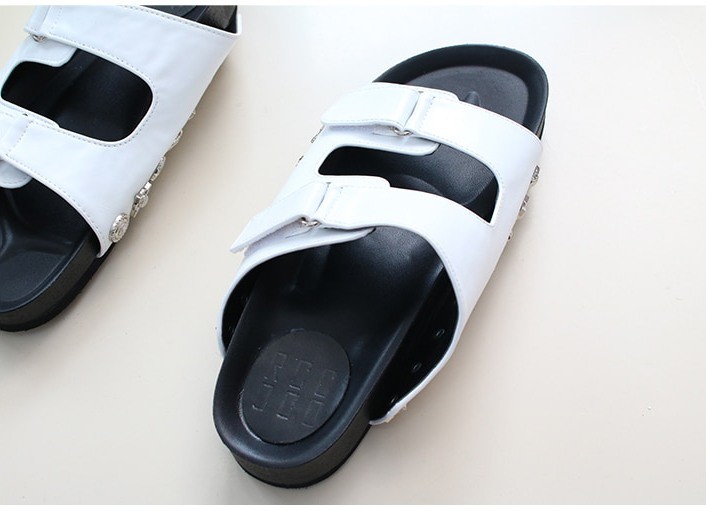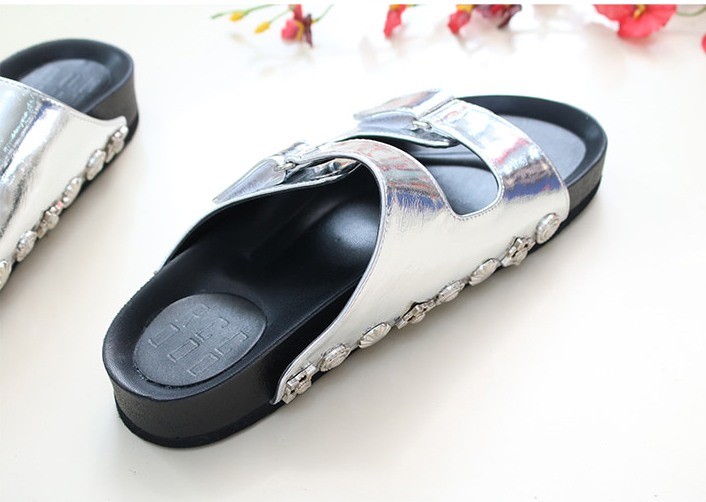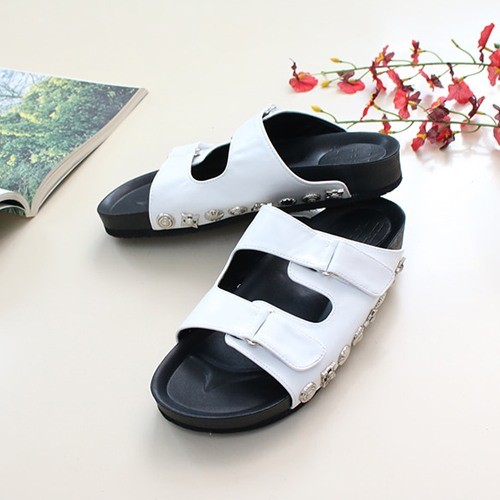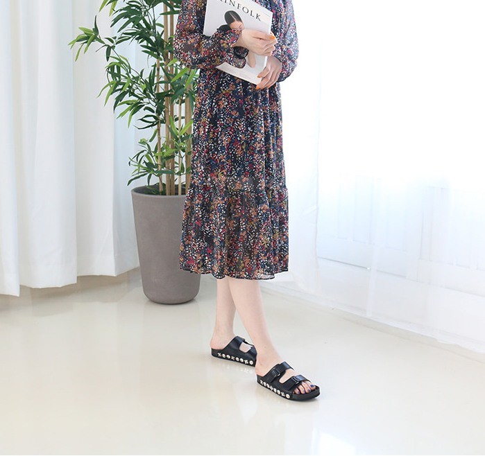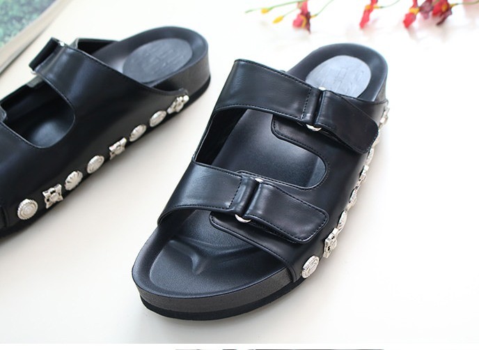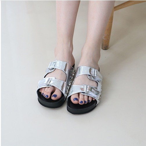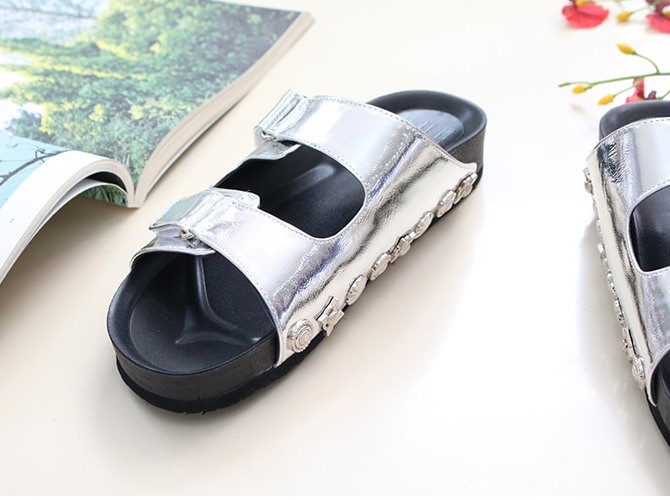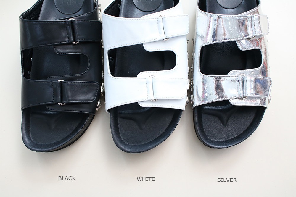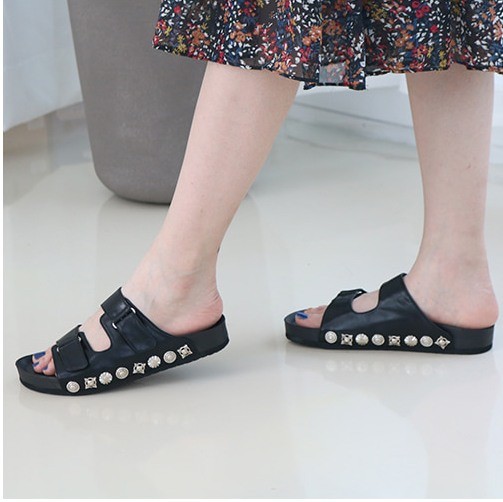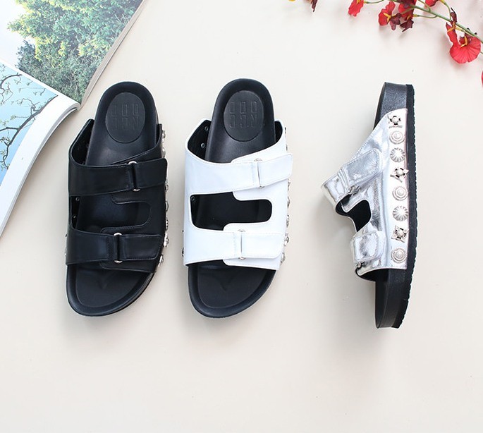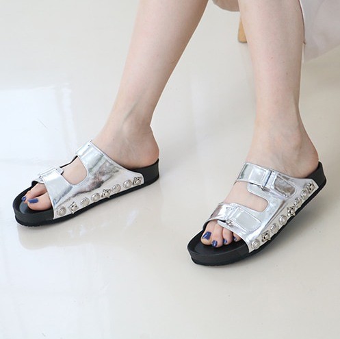 商品名:サンダル レディース ペタンコ フラットサンダル スタッズ 2018 春 ファッション 靴 婦人靴