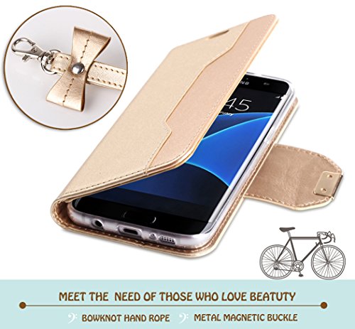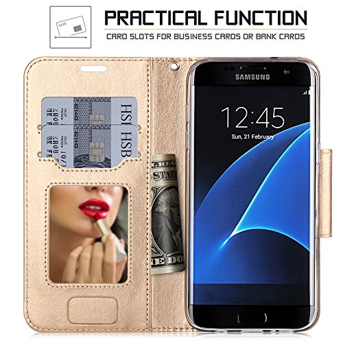 - Title : Samsung Galaxy S7 Edge Case, FYY Premium PU Leather Wallet Case with Cosmetic Mirror and Bow-knot Strap for Samsung Galaxy S7 Edge Gold+Gold