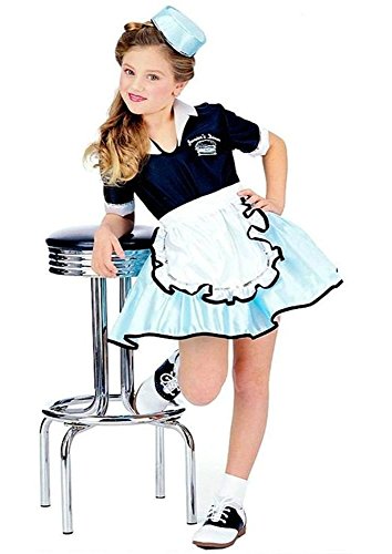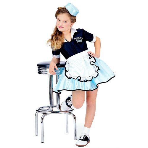 -. Binding : Toy -. Brand : Rubie's -. ClothingSize : One Size -. Color : Multi -. Department : girls -. Feature : Car Hop Girl costume includes dress, apron and cap / Junior's Diner logo printed on front and back of dress bodice / From Rubies 50s Favorite Collection / Child size Large fits up to 60 Inch tall with a 31 to 34-Inch waist, 35 to 39-Inch chest and 35 to 39-Inch hips / Rubies has been designing and manufacturing costumes since 1950 -. Label : Rubies - Domestic -. Manufacturer : Rubies - Domestic -. Model : 884921L-P -. MPN : LYSB00CBESEYM-TOYS -. NumberOfItems : 1 -. PackageQuantity : 1 -. PartNumber : LYSB00CBESEYM-TOYS -. ProductGroup : Toy -. ProductTypeName : TOYS_AND_GAMES -. Publisher : Rubies - Domestic -. Size : Small -. Studio : Rubies - Domestic -. Title : 50s Favorite Girls Car Hop Costume -. Warranty : No Warranty