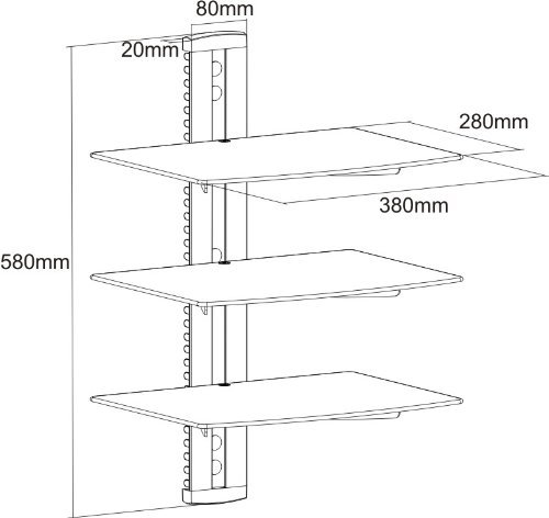 - Feature : Supports a maximum of 17.5lbson each shelf / Three Large Strengthened Tempered Glass Shelves (15" x 11" x 0.2" each shelf / For DVD/Blu-Ray Players, Satellite/Cable Boxes, Games Consoles, Hi-Fi and Surround Speakers / Cable Management System to hide all your messy cables / Easy to use instruction manual for quick and easy mounting with fittings provided