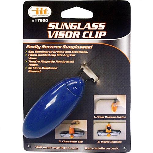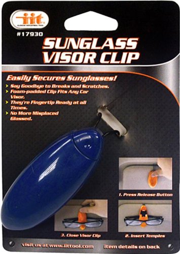 Studio : IIT Publisher : IIT Product Description Sunglasses are an expensive yet delicate fashion item. They are easily scratched, broken or lost. Thanks to the Sunglass Visor Clip from IIT you can feel secure that your glasses and sunglasses are safe and easily accessible any time you need them. This convenient clip attaches to your car or truck sun visor and pops open with the touch of a finger. With a foam rubber inner grip it fits any style of glasses and holds them securely in place. Say good bye to the days of shoving your sunglasses in the glove compartment, your purse or backpack, or digging to find the case they actually go in. Just reach up, push the button and the clip will hold them until you are ready to wear them again. This items ships in assorted colors. 0