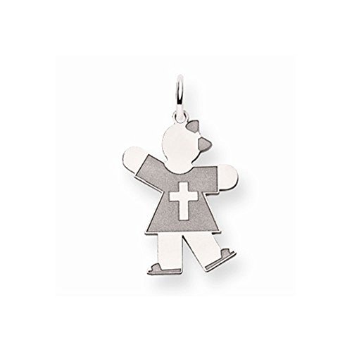 -. Title : 14K White Gold Laser Cut Kid Girl in Cross Dress Charm Pendant