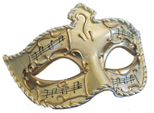 -. Brand : Mardi Gras World -. Color : Gold/Ivory -. Department : womens -. Feature : Handcrafted masquerade mask / Decoupaged musical notes highlight this wearable work of art / Held in place by soft satin ribbons for a comfortable fit / Matching braided edges enhance the look as well / It's a fraction of the price to comparable Italian works -. ProductGroup : Apparel -. ProductTypeName : ADULT_COSTUME -. Size : one size -. Title : Medici Eye Music Notes Mardi Gras Mask Gold & Ivory Antique Halloween Prom Masquerade