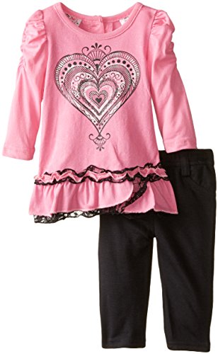 -. Binding : Apparel -. Brand : Young Hearts -. Department : baby-girls -. Feature : Mock fly and mock front pockets / 2 button closure on back of shirt / Top with heart design -. Label : Young Hearts Baby -. Manufacturer : Young Hearts Baby -. PackageQuantity : 1 -. ProductGroup : Apparel -. ProductTypeName : SHIRT -. Publisher : Young Hearts Baby -. Studio : Young Hearts Baby -. Title : Young Hearts Baby-Girls Newborn 2 Piece Long Sleeve Top and Pant