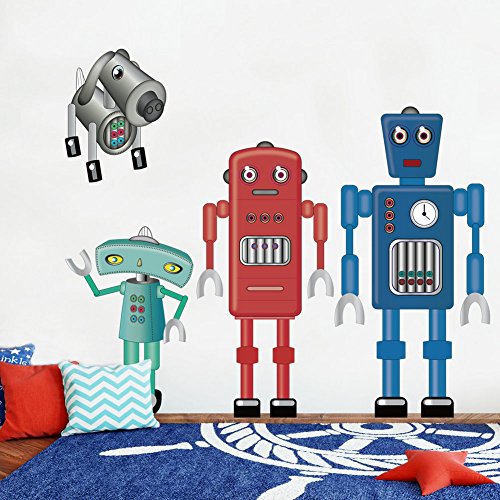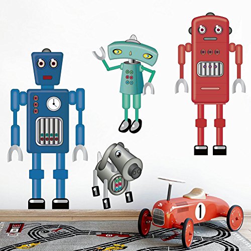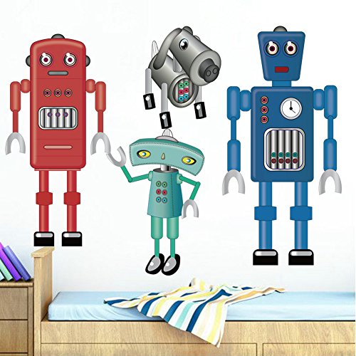 DecalMile Cartoon Robot Wall Stickers Removable DIY Wall Decals Murals For Kids Children's Room Nursery