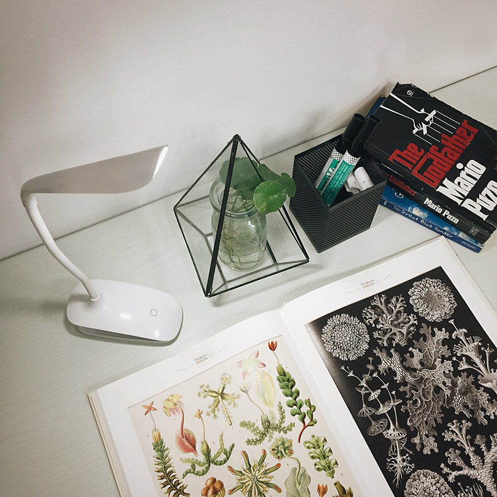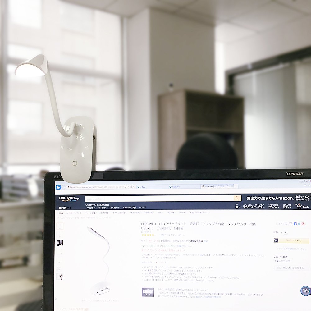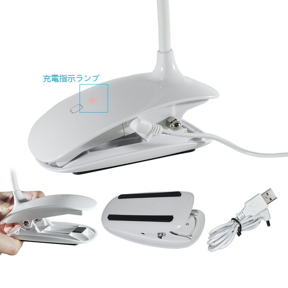 Since it is a rechargeable clip light, the cable does not disturb or disturb the interior, and the surrounding desk installed is very refreshing. I think the design is refined and beautiful. Although it is a clip type, it can also be self-sustaining normally without being caught, so you can choose whether to sandwich or to be independent depending on where you want the light. Although the light is in 3 stages, 1st step and 2 step are the brightness of the degree that it is only necessary to have lights for the time being, and if you read a book or work, you need to set it to the maximum brightness of the third step . The neck part continuing from the foundation towards the lighting part is flexible and can adjust the angle freely. Nevertheless there is no hardness, so it will not be lost by the weight of the head. This part is amazing. ON / OFF is a touch sensor type, sensitivity is good. Turning to points that I was concerned for at the time, · There is no sense of stability when clipping as much as I thought. Or you need to find a stable position, scissors condition. And at this time the light often comes in touch with the sensor. · The position of the lighting part is lowered compared to the case where it is self-standing when pinched by a clip, and the length feels low. · It is hard to tell if charging has ended. At least it was good if there was a change such as lighting somewhere during charging, turning off when it was over. But this seems to be the same for other products as well. In the meantime, I did not care about lowering the evaluation, so I decided to make it star 5, but if there is a possibility to release a new work, I would like you to consider especially the third one.