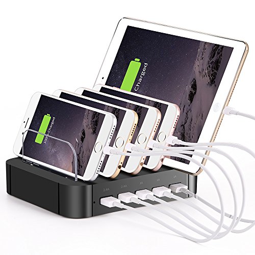 -. Title : Charging Station,5 Port Universal Mutiple Device Fast Charging Station, Desktop Charger Stand Charging Hub Organizer & Cell Phone Docking Station - for Smartphone/iPad mini/Kindle/Tablets(Black)
