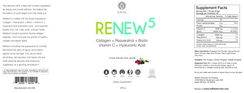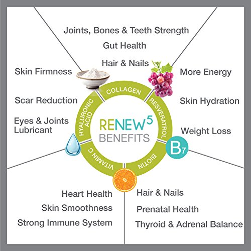 -. Title : ReNew5 – Skin Rejuvenation & Hydration Drink Mix, 5 Potent Ingredients for Beauty and Wellness – Collagen + Resveratrol + Biotin + Vitamin C + Hyaluronic Acid,30 servings