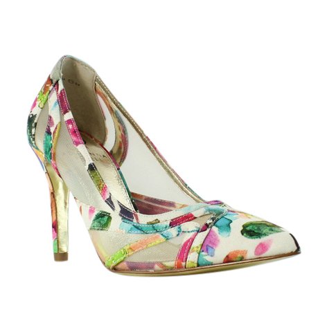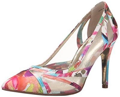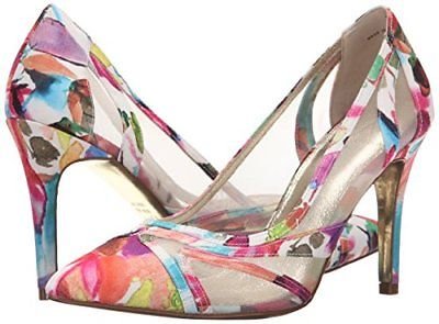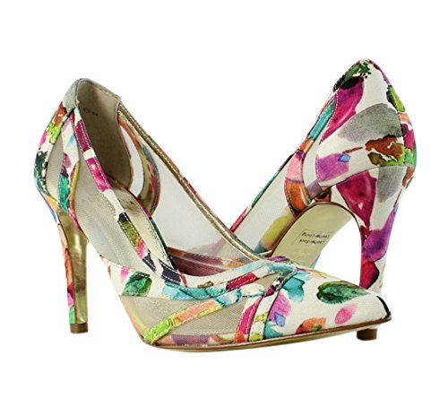 Studio : Adrianna Papell Publisher : Adrianna Papell Binding : Apparel Product Description Vibrant floral printed canvas heightens the romantic appeal of this quintessential spring pump finished with flirty mesh panels and a perfectly pointed toe. A 3 ½ inch heel and slender stiletto elongates the leg. Pair this playful pump with your favorite denim or dress for a flirtatious pop of color and flare. 0