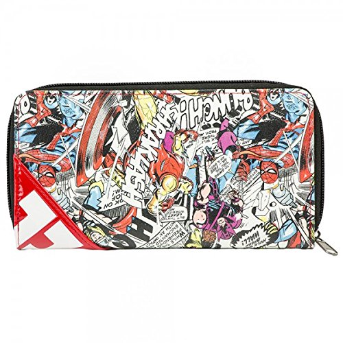 Marvel Comics Graphic Wrap Zip Up Clutch Wallet. Design features a multicolored superhero print.
