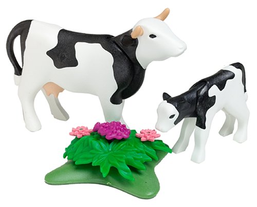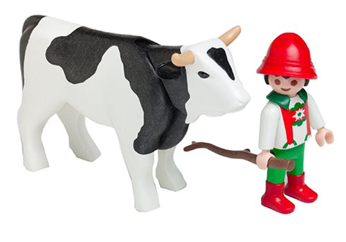 It´s a beautiful morning as the herdsman guides the Playmobil Cows out to pasture with his staff! The cow, bull, and calf saunter slowly along in front of him, their heads nodding up and down with each step! This pretend play toy is the perfect adventure playset for any child who loves to play with fun farm toys! Ages 4+ 3077 Playmobil