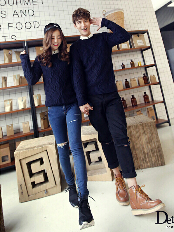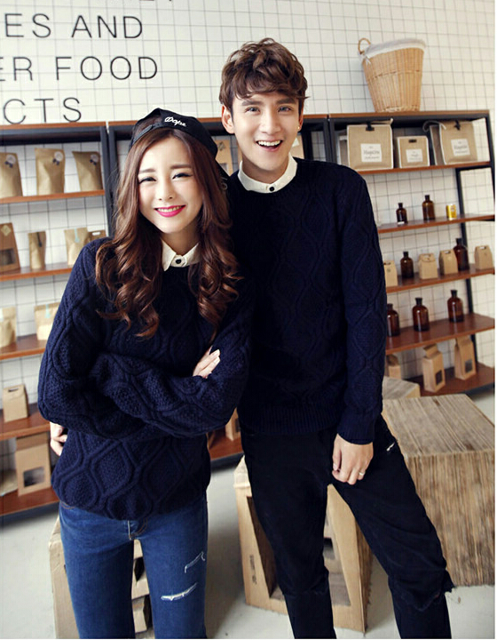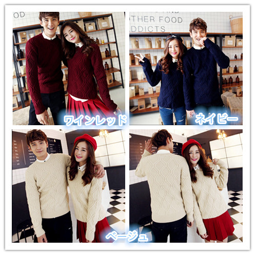 商 品 名 : ペアルック カップルのセーター 長いセクションセーター コート 上着 お洒落 おしゃれ 丸首ニット ネイビーセーター