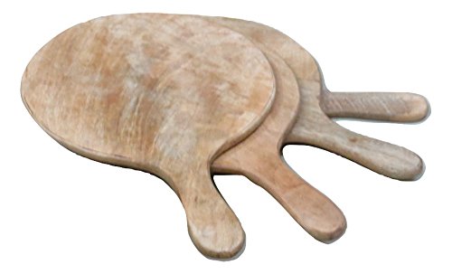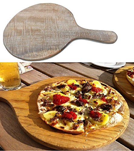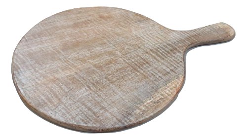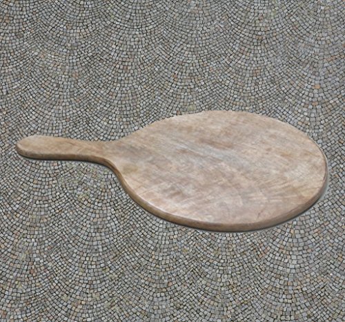 AFFAIRES WOODEN ROUND PIZZA PLATE WITH HANDLE / BAT / BOARD / RACKET 10 INCHES MANGO WOOD SS-016