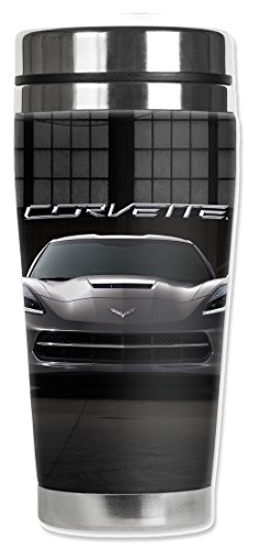 Mugzie GM-245-MAX "Corvette C7 Grey II Vette" Travel Mug with Insulated Wetsuit Cover, 20 oz, Black