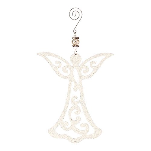 Angel With Filigree Robes Glitter White 4 x 8 Metal Christmas Ornament