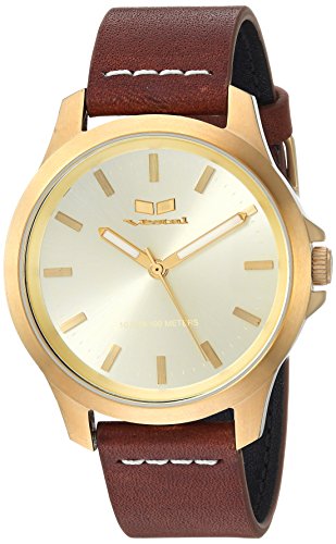 -. Title : Vestal Quartz Stainless Steel and Leather Casual Watch, Color:Brown (Model: HEI393L03.LBWH)