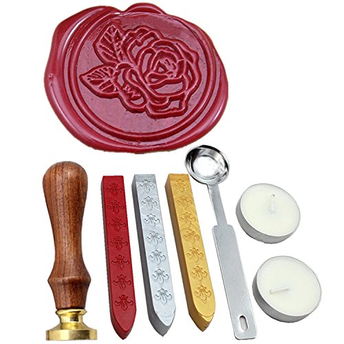 FQL Camellia Vintage Rosewood Wax Seal Stamp Gift Set With Gold Red Silver Sticks