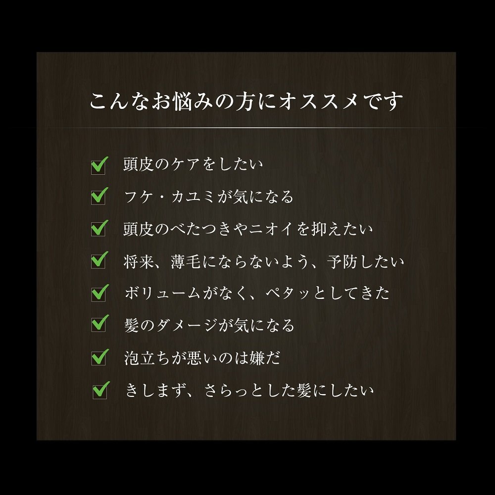 【96%天然・植物由来】4種の植物エキスが、フケ・かゆみ、におい・ベタつき、頭皮の乾燥をしっかりケアしてハリのある健康な髪へ。
