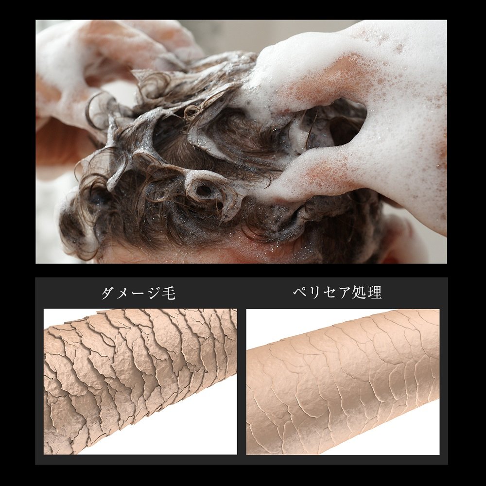 【キシまず、さらっと清潔な髪へ】天然トリートメント成分配合ペリセアが、髪の内側に浸透し、ダメージを補修。
