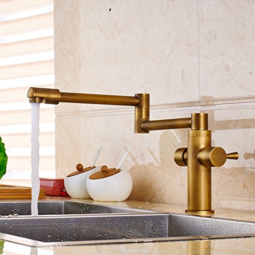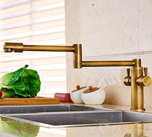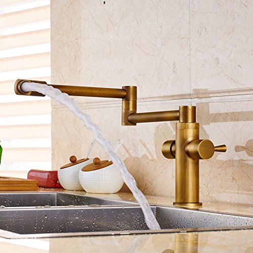Senlesen Deck Mount Antique Brass Bathroom Faucet Kitchen Sink Mixer Tap Swivel Spout with Cove Plate