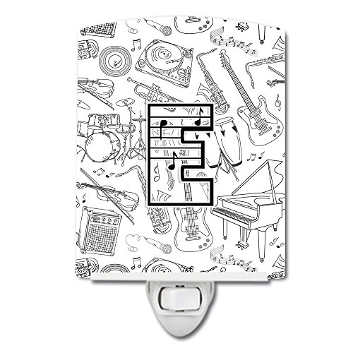Caroline's Treasures E Musical Note Letters Ceramic Night Light, 6 x 4", Multicolor