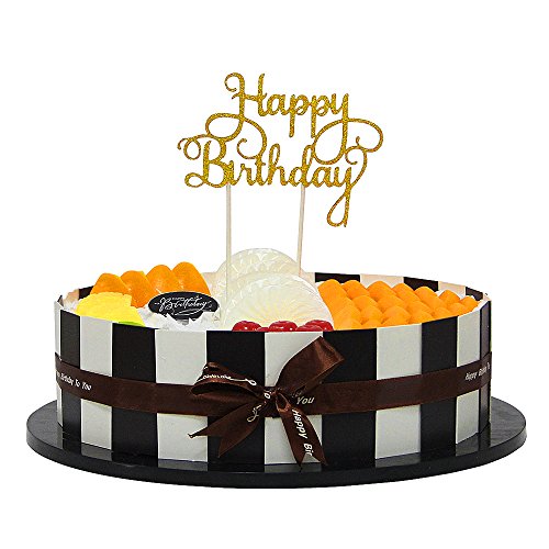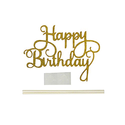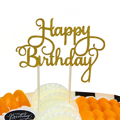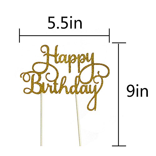 PALASASA Happy Birthday Cake Toppers. Sparkling Gold Glittery Birthday Cupcake Picks. Birthday Party Decorations