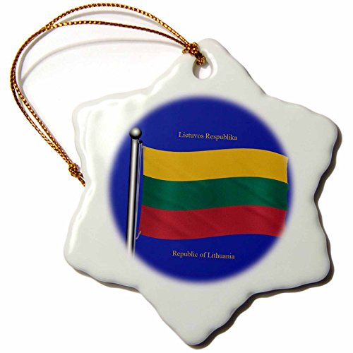 3dRose orn_63174_1 Flag of Lithuania on Blue Background with Republic of Lithuania in English and Lithuanian, Snowflake Ornament, Porcelain, 3-Inch