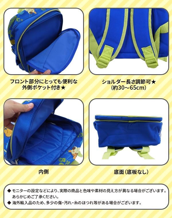 プーさんと仲間達のデザインが目を引く、お子様向けのリュックです。両サイドにもポケットが付いており、ちょっとしたものを入れるのに便利。国内ライセンス商品は落ち着いた柄・色合いが多いのですが、派手でかわいいデザインは海外輸入ならでは♪ |