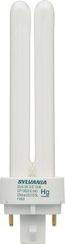 Product DescriptionSylvania 20667 DULUX 13W double compact fluorescent lamp with 4-pin base, integral EOL, 4100K color temperature, 82 CRI, for use with electronic and dimming ballasts, ECOLOGIC.0