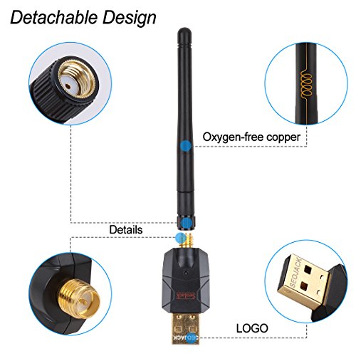Studio : Seojack Publisher : Seojack Binding : Electronics Product Description Advanced Technology for wider coverage and greater speed. Seojack wifi adapter complies with the new Wi-Fi performance standard known as Wi-Fi AC. It works with the advanced technology MU-MIMO(Multi-User Multiple-Input Multiple-Output), which nearly eliminates dead spots by reusing and intelligently rerouting radio signals that confused older products. With Seojack adapter, anywhere within a typical house is likely to be adequately covered.Being able to operate in two different frequency ranges, 2.4GHz and 5GHz. The total bandwidth of Seojack adapter can sum up to 600Mbps. This gives it a notable advantage of being better able to carry network traffic that requires extensive bandwidth. Examples of such traffic include HD video streaming, voice applications like VoIP telephony and graphics-intensive games. Use Tips: 1.Install the driver before you insert the usb wifi adapter. 2. For computers or laptops without CD slots, please download the file from: http://www.win-star.com/download/Drivers/WN_V6.75.rar . 3. Please keep your hands off while detecting heating. 4. Please pull it out after using and pack it for the usage next time in case of overheating 5. It is backward compatible with 802.11 a/b/g/n products. System requirements: Windows XP / Vista / 7 / 8 / 8.1/10 (32/64bits) MAC OS X 10.11.X / 10.10.X / 10.9.X / 10.8.X /10.7.X Package Includes: 1 * SeoJack AC600 USB WIFI Adapter 1 * Drivers CD 1 * User Pamphlet Support and Service: Any help needed or any problem with the product, please feel free to contact us "Seojack Direct". 0 |