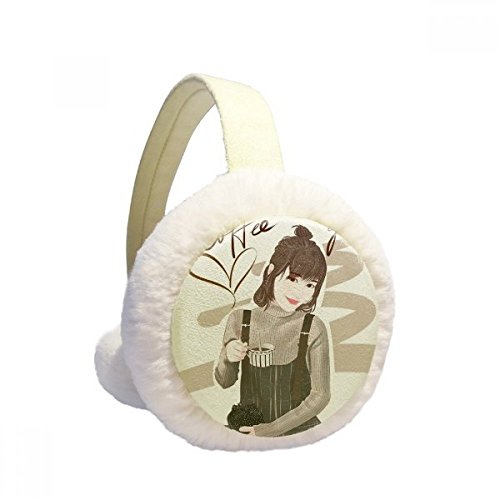 (DIYthinker)/Accessories/Cold Weather Accessories/DIRECT FROM USA/Coffee Girl Figure Art Design Illustration Winter Earmuffs Ear Warmers Faux Fur Foldable Plush ...