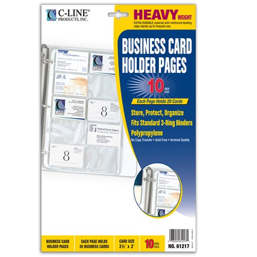-. Title : C-Line Business Card Binder Pages, 20 3 1/2 Cards/Page, Clear, 10 Pages/Pack